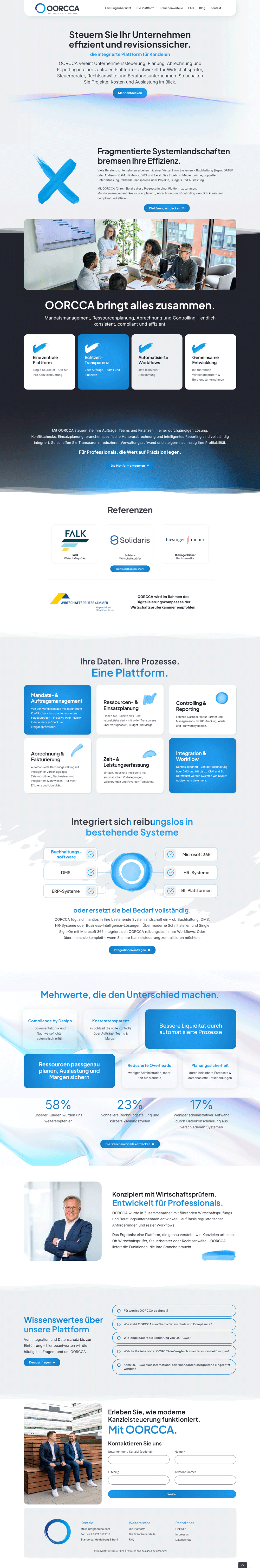 Für OORCCA haben wir eine Webseite entwickelt, die den Anspruch der Marke an Qualität, Klarheit und moderne Ästhetik digital übersetzt. Das reduzierte Layout schafft Raum für Inhalte und lenkt den Fokus gezielt auf Leistungen und Werte. Durch eine strukturierte Nutzerführung und klare visuelle Hierarchien entsteht eine ruhige, professionelle User Experience, die Vertrauen aufbaut und Orientierung bietet. Die Seite vermittelt die Marke nicht nur informativ, sondern macht sie auch visuell greifbar.